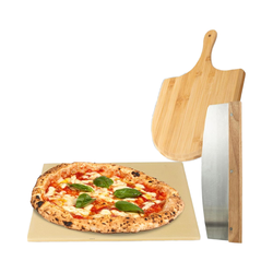 Juego de Piedra para Horno de Pizza de 15x12 Pulgadas, Cerámica Desechable, 3 Piezas, Accesorios para Hacer Pizza con Asas de Madera, Horno de Pizza Grande
